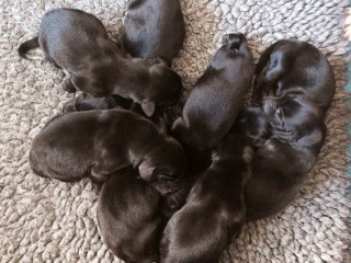I can’t believe that 5 weeks have passed since the pups arrived. It has just flown by. I am taking the opportunity of 8 sleeping babies and a respite from uni work to post an update on progress.
