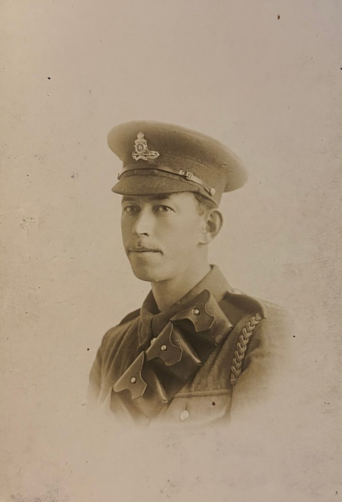 Dave became a gunner in the Royal Garrison Artillery, serving with the 146th Heavy Battery. He went overseas with the British Expeditionary Force in November 1916 and served in France and Flanders for ten months, manning heavy artillery in support of front-line operations.