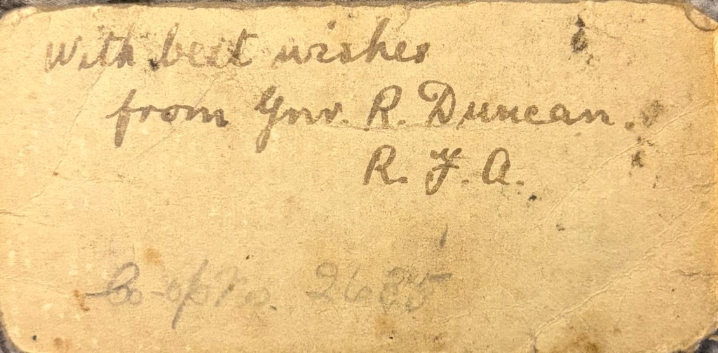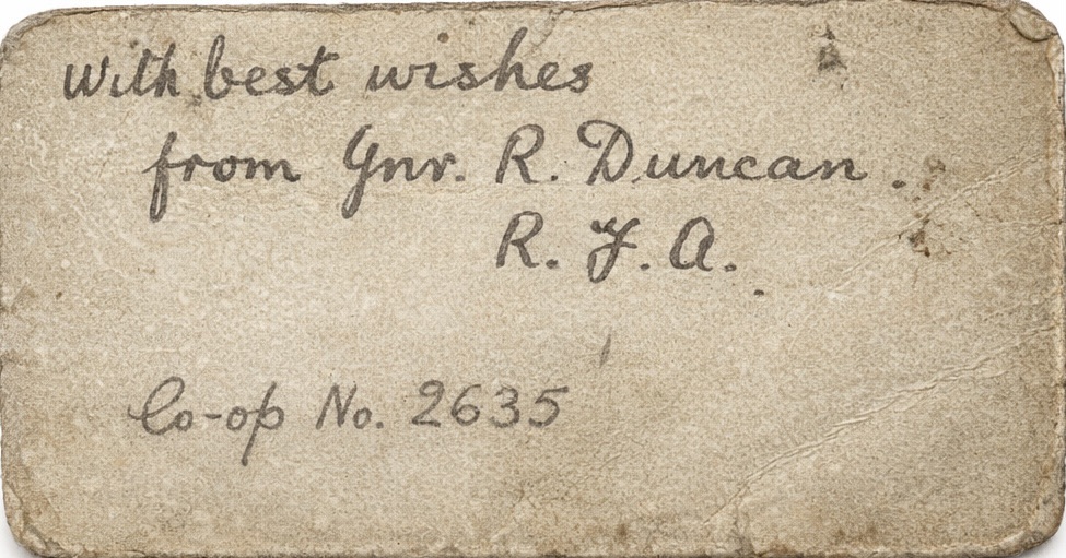 He signs the photo “With best wishes from Gnr R. Duncan. R.G.A.”
