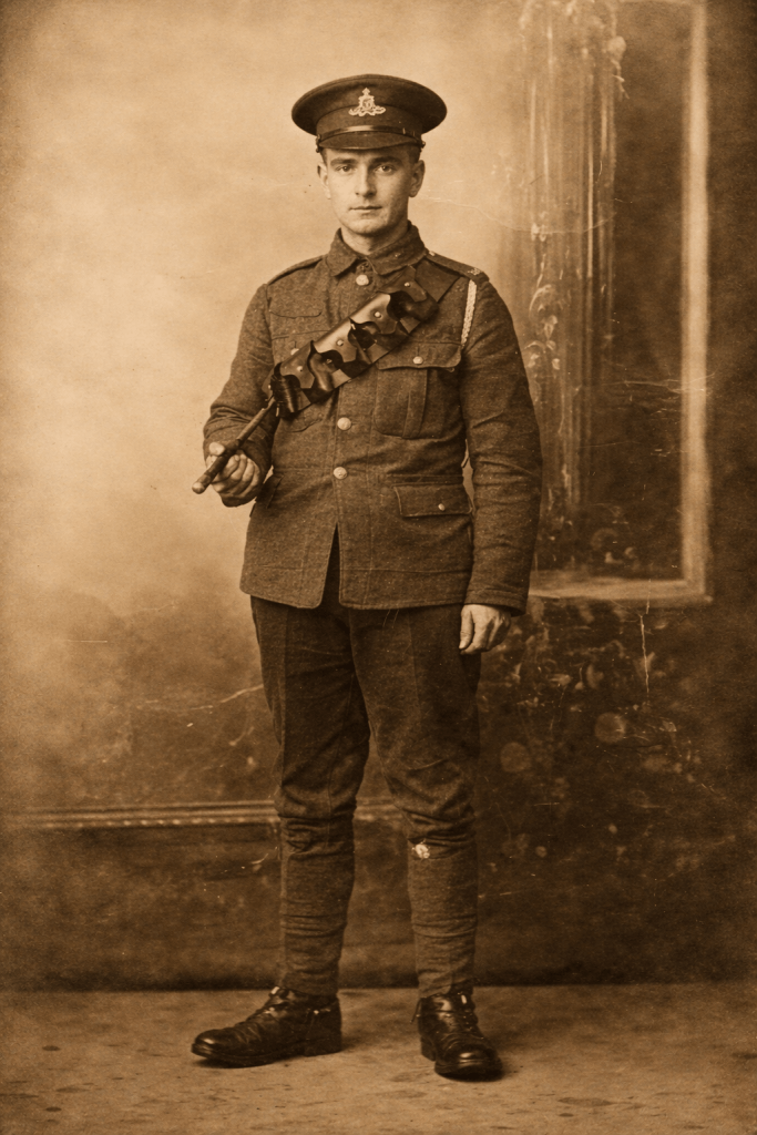 It’s interesting that his uniform here is very similar to that of Dave Clyne (who would have been Robert’s brother-in-law had he survived the war). On that basis I presumed that he joined the Royal Garrison Artillery.