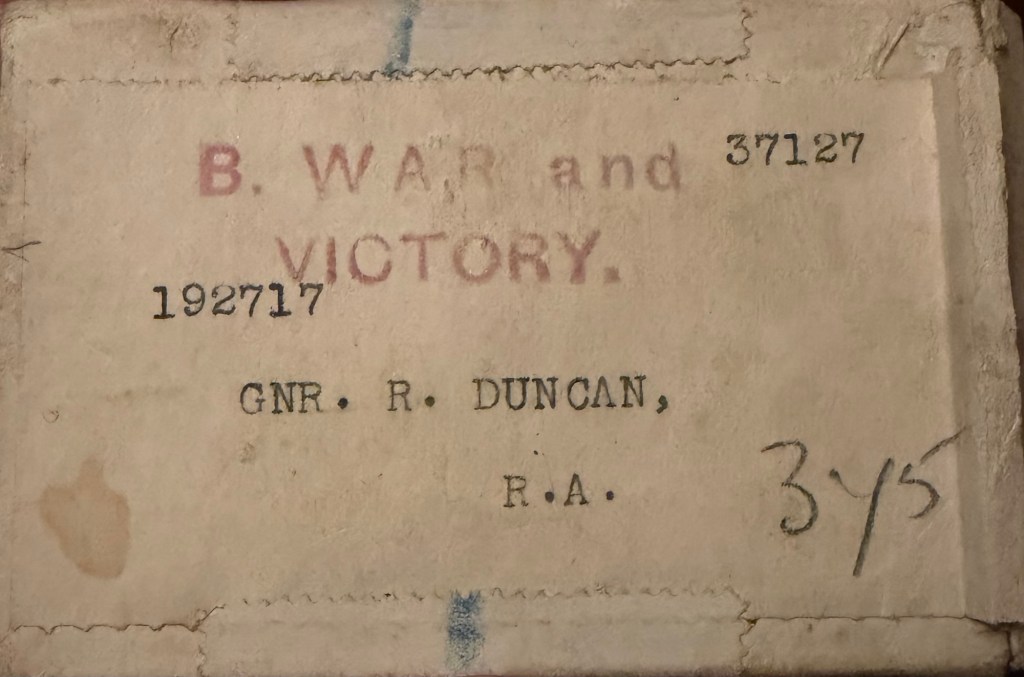 He signs the photo “With best wishes from Gnr R. Duncan. R.F.A.”