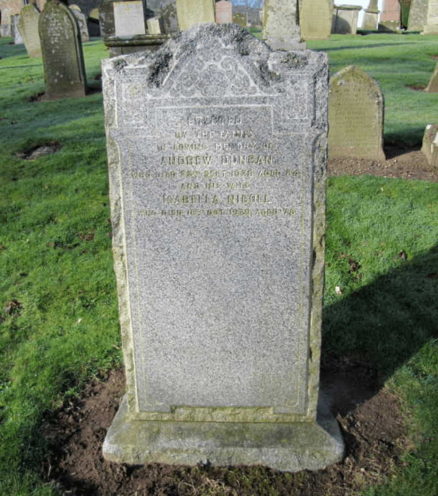 Census records show that the family were living at Queen Street, Monifieth in 1881. Here Andrew is recorded as a gardener for the first time. By 1891 the Duncans were back in Andrew’s place of birth, Maryton, now living at the Gardener’s House at Old Montrose — the home where Andrew would remain for the rest of his working life. More about Andrew’s gardening career can be read here.