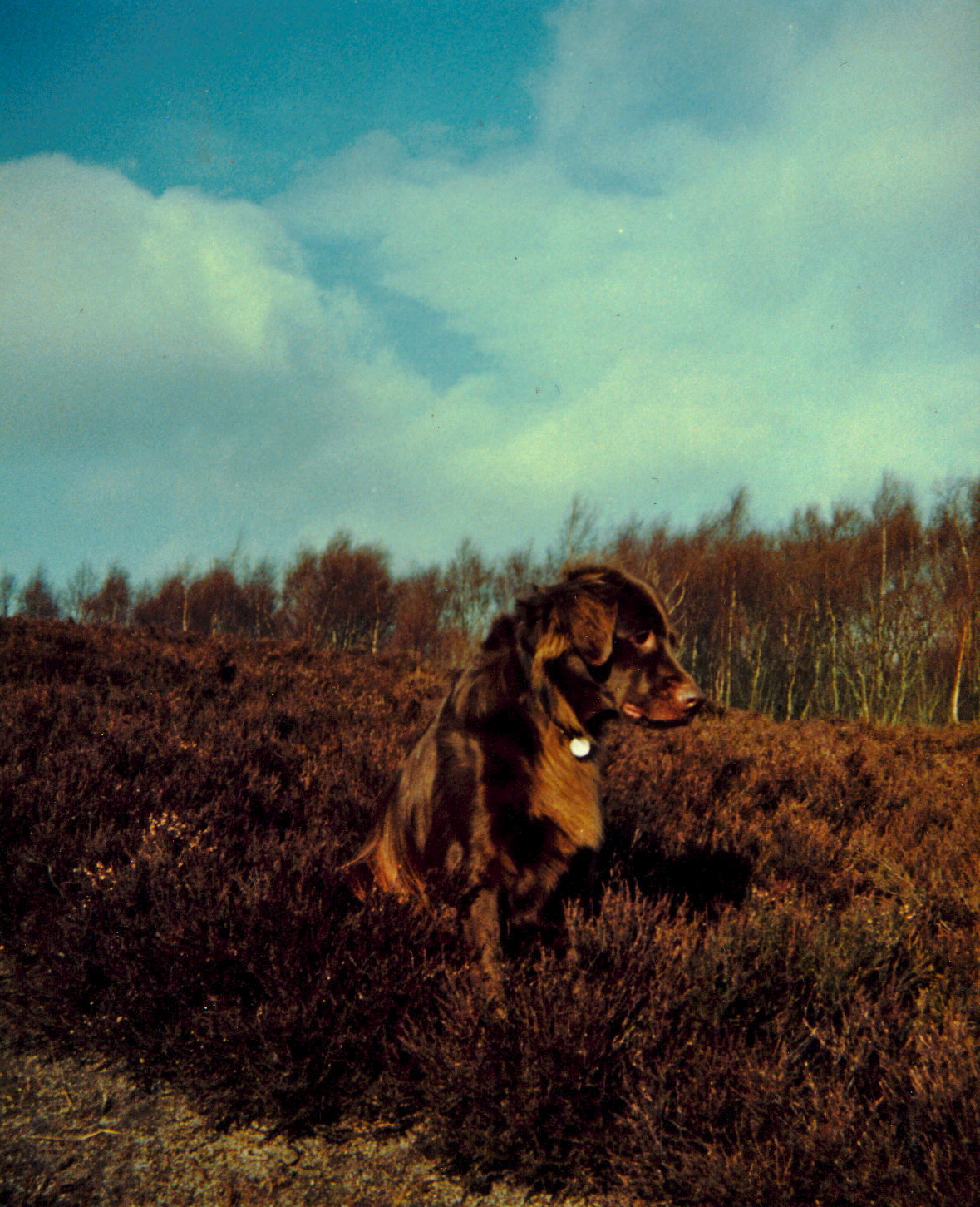 After Neerday died we pestered Dad to get another dog and so Cari arrived, our first flat coat, a liver girl. Unfortunately we have no idea what her pedigree is, my Mum has no recollection and all I can remember is she came from Lochwinnoch.